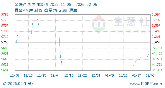 2月6日,生意社金属硅基准价为9660.00元/吨,与本月初(9650.00元/吨)相比,上涨了0.10%。