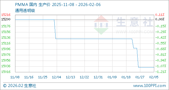 2月6日,生意社PMMA基准价为15033.33元/吨,与本月初持平。