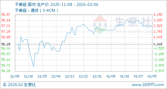 2月6日,生意社干香菇基准价为57.69元/公斤,与本月初(57.74元/公斤)相比,下降了0.09%。