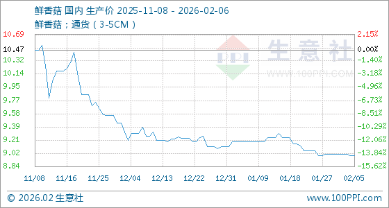 2月6日,生意社鲜香菇基准价为8.99元/公斤,与本月初(9.01元/公斤)相比,下降了0.22%。