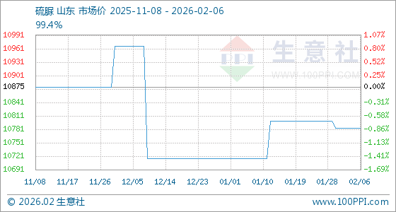 2月6日,生意社硫脲基准价为10783.33元/吨,与本月初持平。