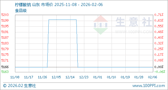 2月6日,生意社柠檬酸钠基准价为5166.67元/吨,与本月初持平。