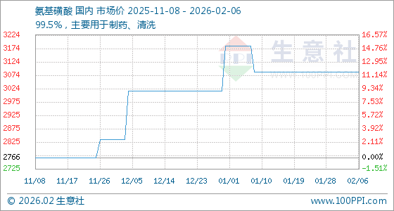 2月6日,生意社氨基磺酸基准价为3087.50元/吨,与本月初持平。