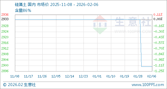 2月6日,生意社硅藻土基准价为2900.00元/吨,与本月初持平。