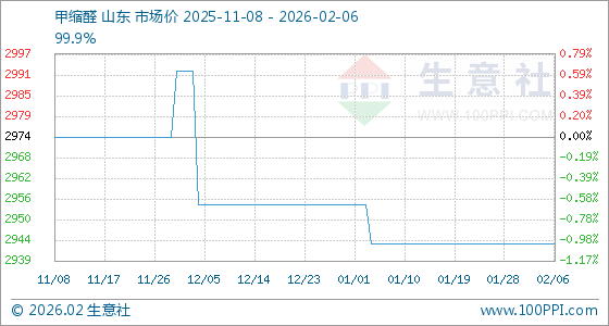 2月6日,生意社甲缩醛基准价为2944.00元/吨,与本月初持平。