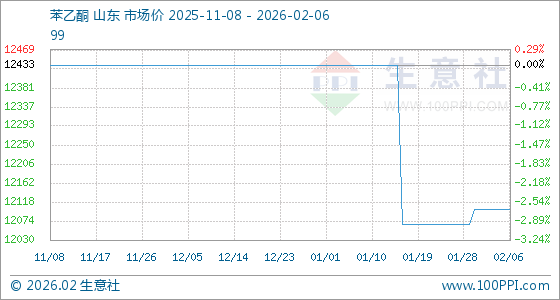 2月6日,生意社苯乙酮基准价为12100.00元/吨,与本月初持平。