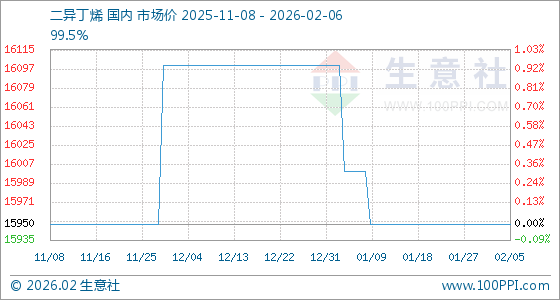 2月6日,生意社二异丁烯基准价为15950.00元/吨,与本月初持平。