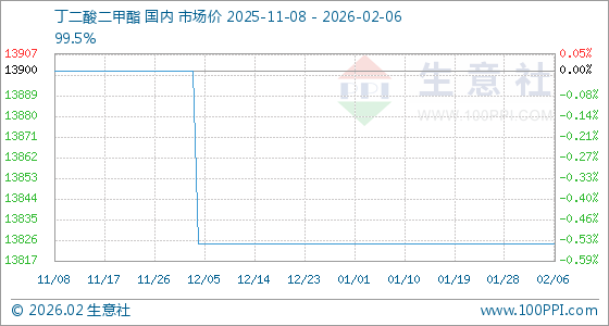 2月6日,生意社丁二酸二甲酯基准价为13825.00元/吨,与本月初持平。