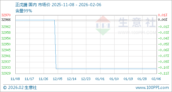 2月6日,生意社正戊腈基准价为32933.33元/吨,与本月初持平。