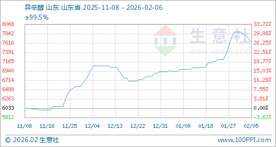 2月6日,生意社异辛醇基准价为7633.33元/吨,与本月初(7880.00元/吨)相比,下降了3.13%。
