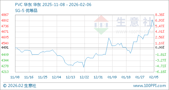 2月6日,生意社PVC基准价为4742.00元/吨,与本月初(4640.00元/吨)相比,上涨了2.20%。