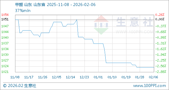 2月6日,生意社甲醛基准价为1023.75元/吨,与本月初持平。