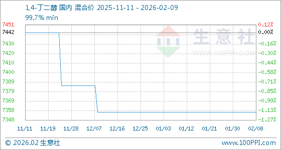 2月9日,生意社1,4-丁二醇基准价为7357.14元/吨,与本月初持平。
