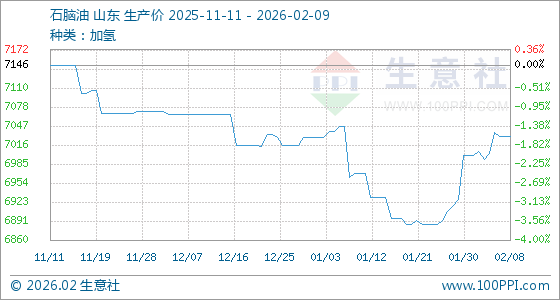 2月9日,生意社石脑油基准价为7030.00元/吨,与本月初(7000.00元/吨)相比,上涨了0.43%。