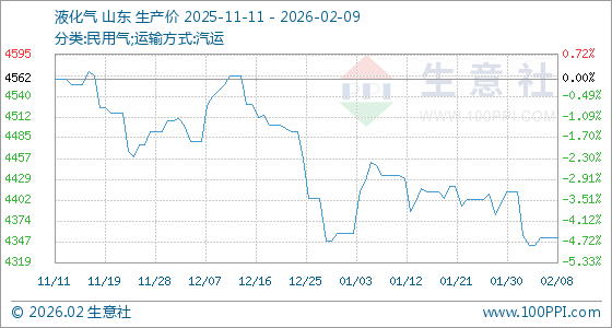 2月9日,生意社液化气基准价为4352.50元/吨,与本月初(4412.50元/吨)相比,下降了1.36%。
