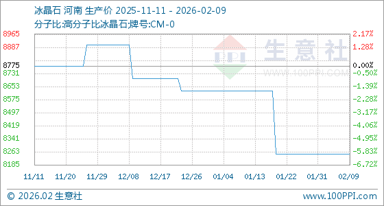 2月9日,生意社冰晶石基准价为8250.00元/吨,与本月初持平。