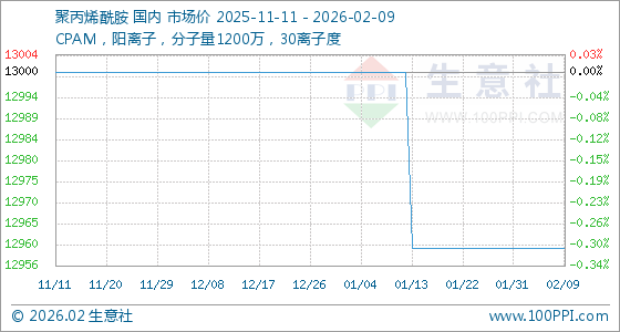 2月9日,生意社聚丙烯酰胺基准价为12960.00元/吨,与本月初持平。