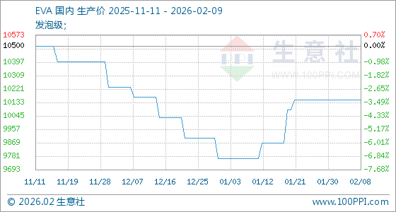 2月9日,生意社EVA基准价为10150.00元/吨,与本月初持平。