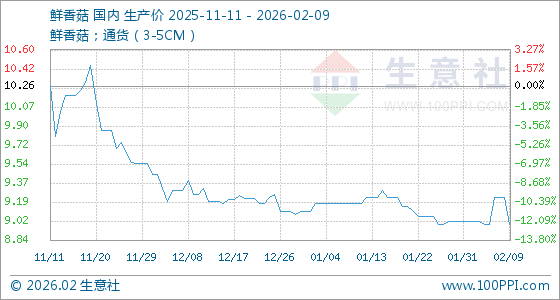2月9日,生意社鲜香菇基准价为9.24元/公斤,与本月初(9.01元/公斤)相比,上涨了2.55%。