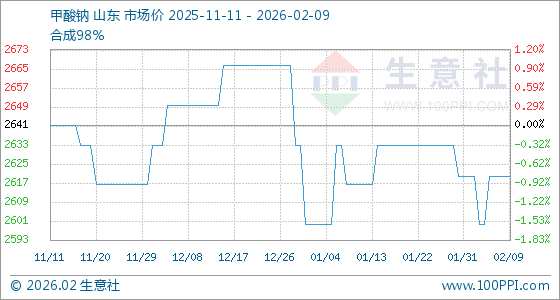 2月9日,生意社甲酸钠基准价为2620.00元/吨,与本月初持平。