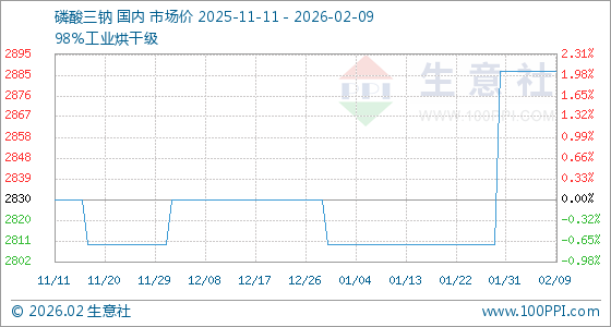 2月9日,生意社磷酸三钠基准价为2887.50元/吨,与本月初持平。