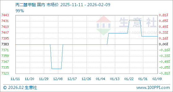 2月9日,生意社丙二醇甲醚基准价为7400.00元/吨,与本月初持平。