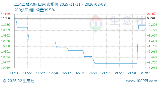2月9日,生意社二乙二醇乙醚基准价为11033.33元/吨,与本月初(10771.43元/吨)相比,上涨了2.43%。