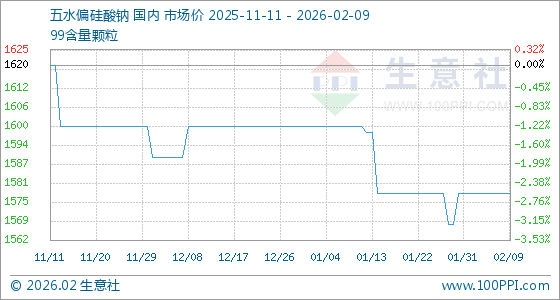 2月9日,生意社五水偏硅酸钠基准价为1578.00元/吨,与本月初持平。