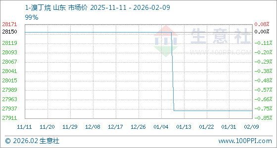 2月9日,生意社1-溴丁烷基准价为27933.33元/吨,与本月初持平。
