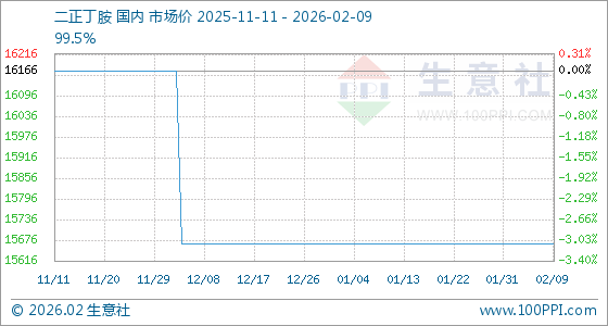 2月9日,生意社二正丁胺基准价为15666.67元/吨,与本月初持平。