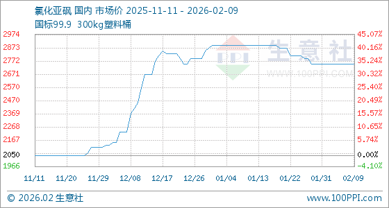 2月9日,生意社氯化亚砜基准价为2750.00元/吨,与本月初持平。