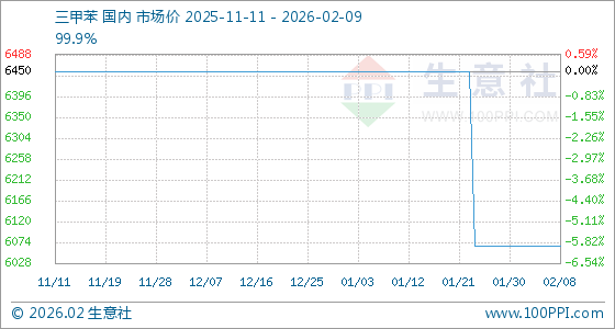 2月9日,生意社三甲苯基准价为6066.67元/吨,与本月初持平。