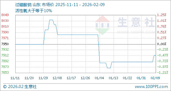 2月9日,生意社过硼酸钠基准价为7912.50元/吨,与本月初(7890.00元/吨)相比,上涨了0.29%。