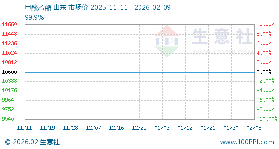 2月9日,生意社甲酸乙酯基准价为10600.00元/吨,与本月初持平。