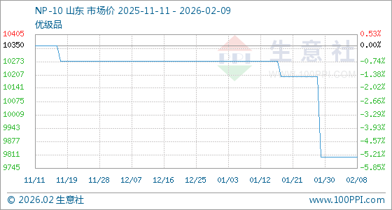 2月9日,生意社NP-10基准价为9800.00元/吨,与本月初持平。