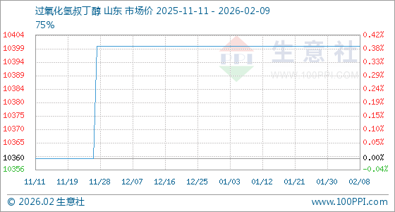 2月9日,生意社过氧化氢叔丁醇基准价为10400.00元/吨,与本月初持平。