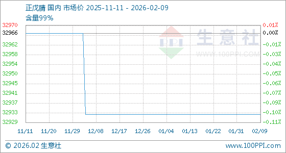 2月9日,生意社正戊腈基准价为32933.33元/吨,与本月初持平。
