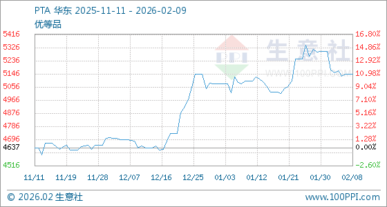 2月9日,生意社PTA基准价为5144.26元/吨,与本月初(5298.83元/吨)相比,下降了2.92%。