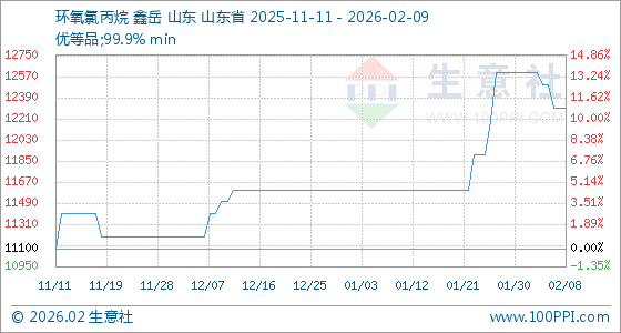 2月9日,生意社环氧氯丙烷基准价为12300.00元/吨,与本月初(12600.00元/吨)相比,下降了2.38%。