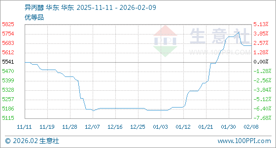 2月9日,生意社异丙醇基准价为5666.66元/吨,与本月初(5733.34元/吨)相比,下降了1.16%。