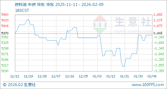 2月9日,生意社燃料油基准价为5362.50元/吨,与本月初持平。