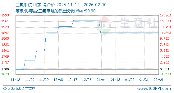 2月10日,生意社三氯甲烷基准价为1900.00元/吨,与本月初持平。