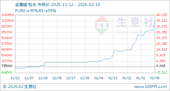 2月10日,生意社金属镨基准价为1030000.00元/吨,与本月初(935000.00元/吨)相比,上涨了10.16%。