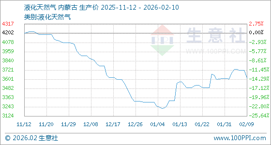 2月10日,生意社液化天然气基准价为3620.00元/吨,与本月初(3610.00元/吨)相比,上涨了0.28%。