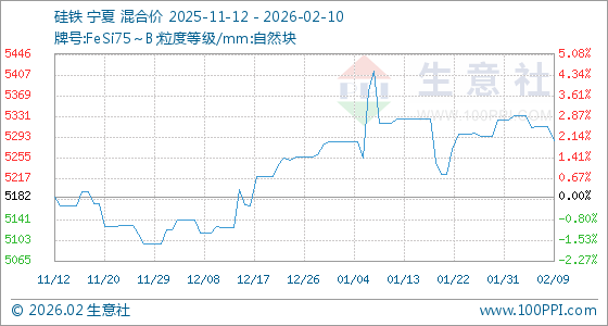 2月10日,生意社硅铁基准价为5287.14元/吨,与本月初(5324.29元/吨)相比,下降了0.7%。