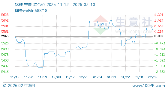 2月10日,生意社锰硅基准价为5566.00元/吨,与本月初(5550.00元/吨)相比,上涨了0.29%。