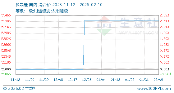 2月10日,生意社多晶硅基准价为53333.33元/吨,与本月初持平。