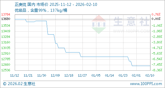 2月10日,生意社正庚烷基准价为12640.00元/吨,与本月初持平。