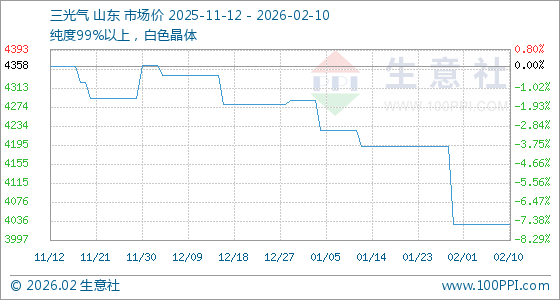 2月10日,生意社三光气基准价为4030.00元/吨,与本月初持平。
