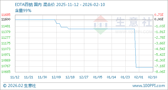 2月10日,生意社EDTA四钠基准价为10750.00元/吨,与本月初持平。